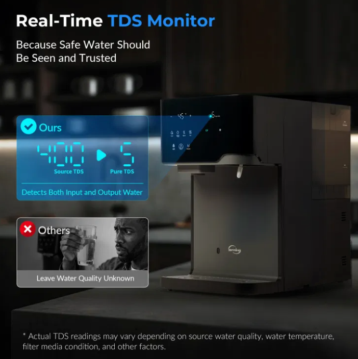 Unlike traditional RO systems that require plumbing and installation under the sink, this system is designed for quick countertop setup. No drilling, plumbing, or complicated installation required.